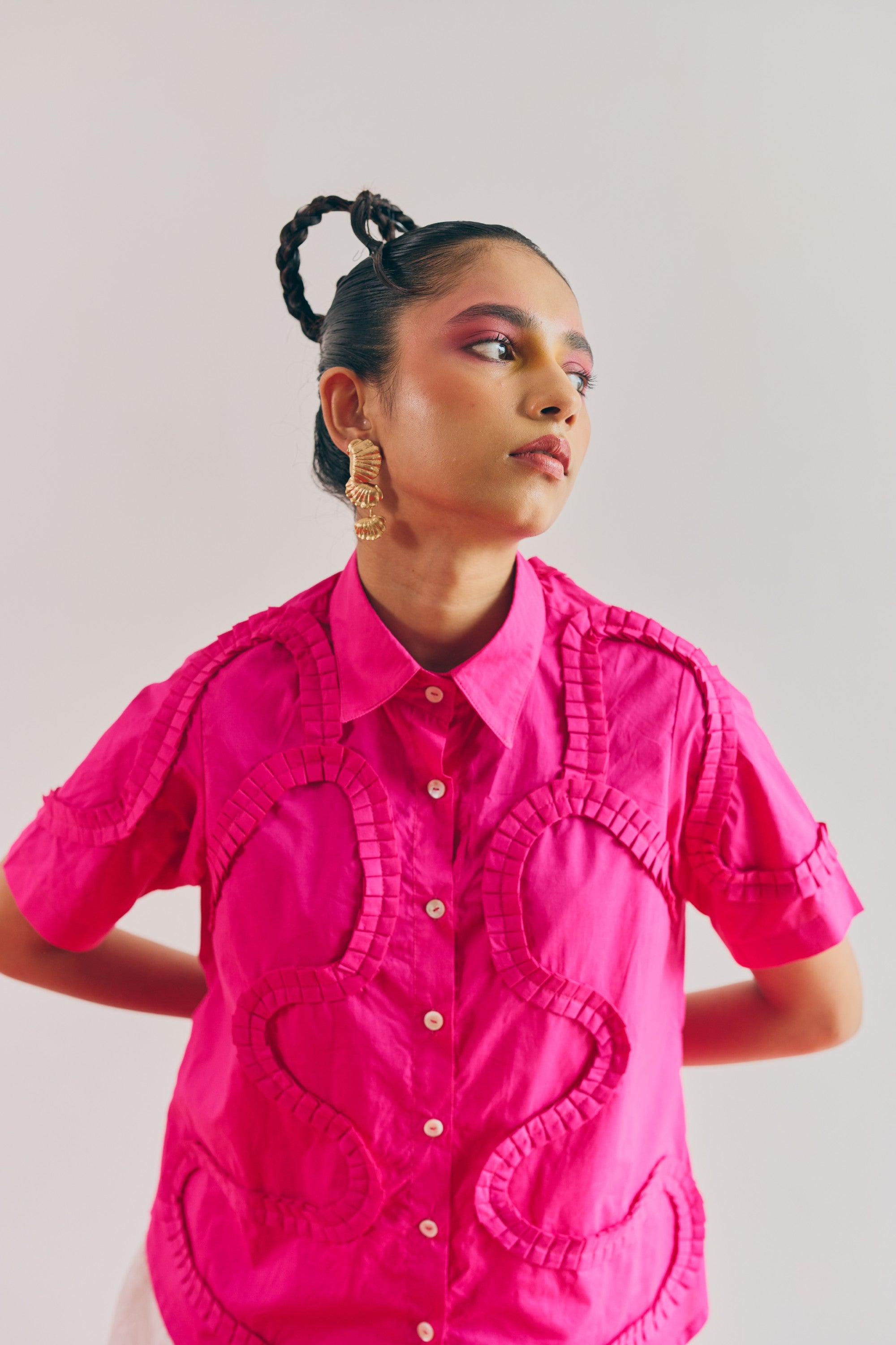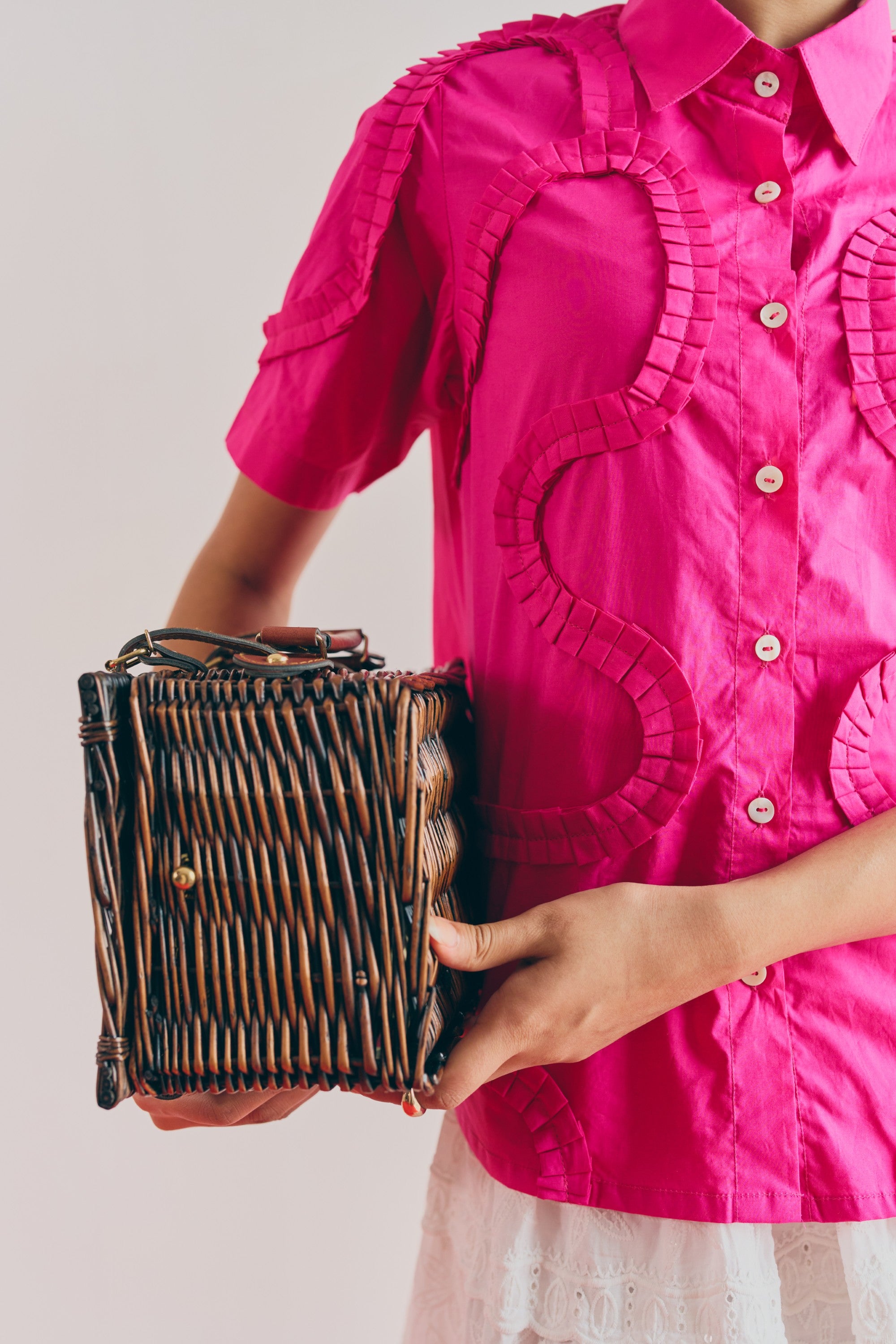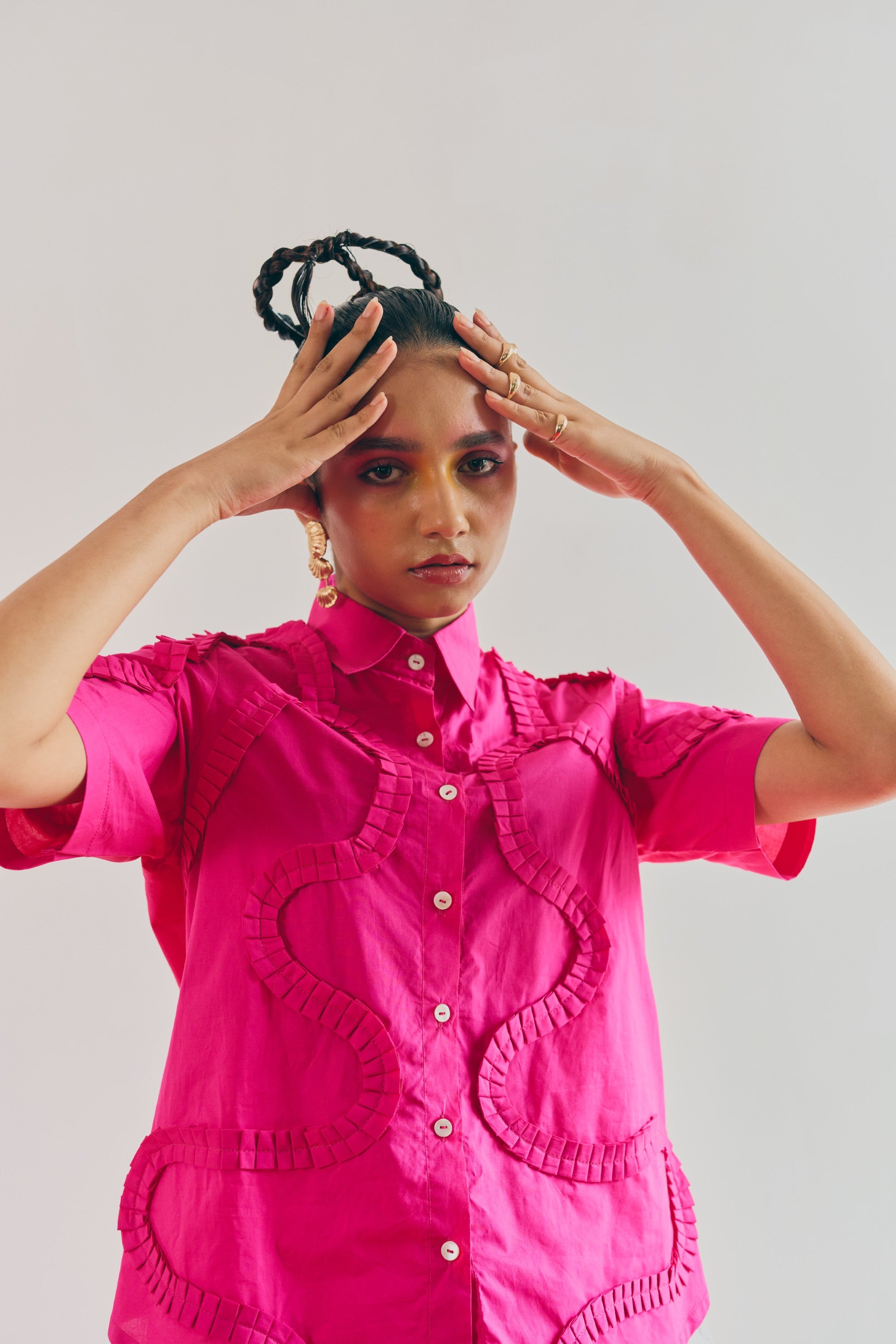 Exquisitely handcrafted pleating meticulously stitched across premium poplin fabric, offering refined texture and timeless sophistication.